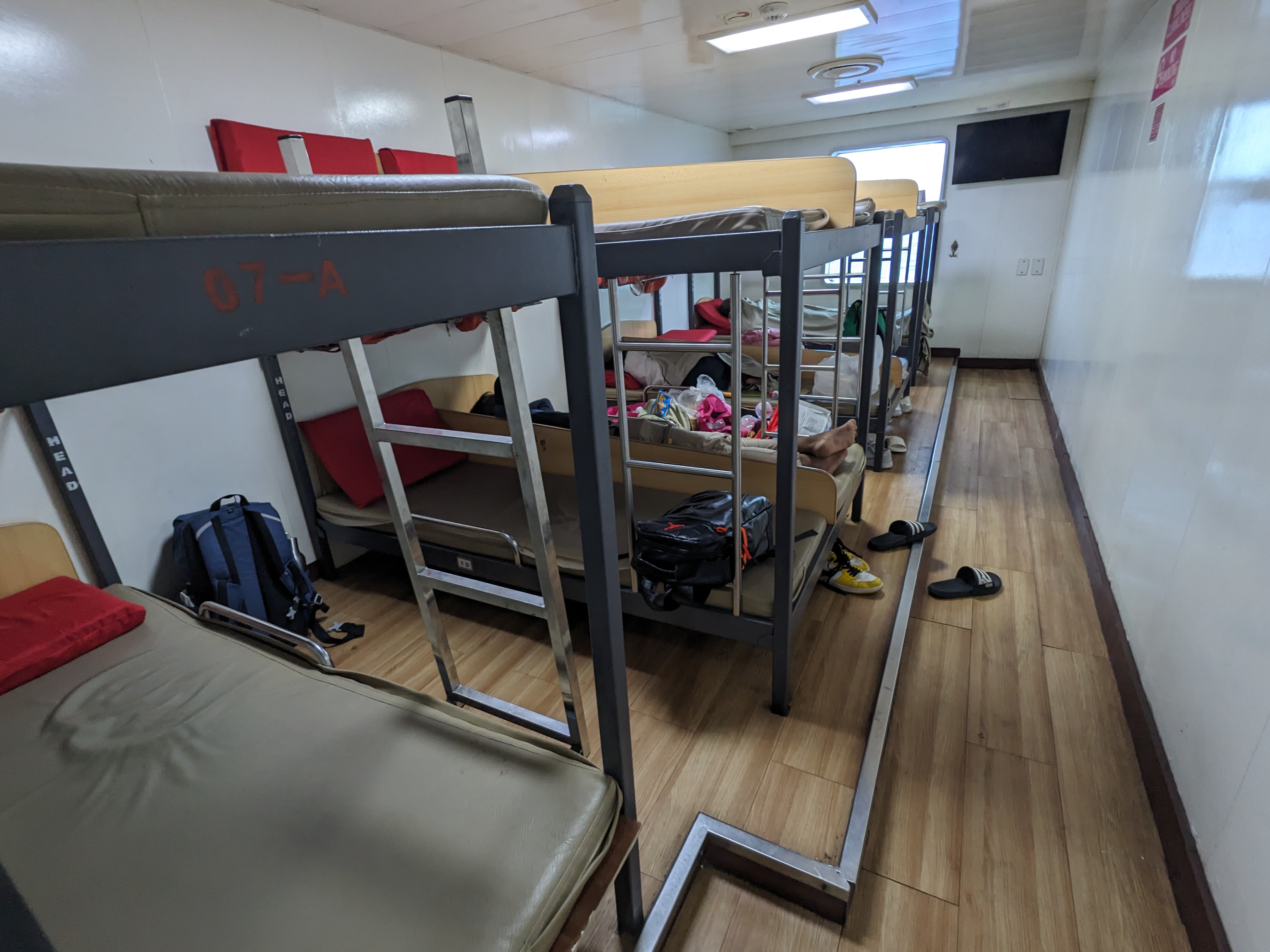 Yesterday, I didn't do much except checking out of my place and went to the ferry terminal at 1 PM to catch the 4 PM ferry to Coron. The ticket, which I had to print out, stated that I need to be at the ferry terminal 3 to 4 hours ahead. Around 2 PM, I got an email saying the ferry will leave at 8 PM instead due to a technical issue. I thought it would be a long wait, but I was able to get on the ferry around 5 PM. The ferry company is called 2GO and the ferry ride is 13 hours to Coron from Manila. Once I saw my bunk bed, which was one of many beds that's packed like sardines, I realized that I wanted to switch to a better bed. And that I did. I ended up spending an additional 300 PHP, or about $6 USD, to sleep in a room with only 4 bunk beds. I also had to pay 50 PHP for a blanket. I feel 2GO is just trying to squeeze the passengers out of every peso they can. They even tried to make me pay for toilet paper using a toilet that didn't even flush! Anyway, the ferry arrived in Coron around 11 AM today. I will never ride an overnight ferry in the Philippines again!
